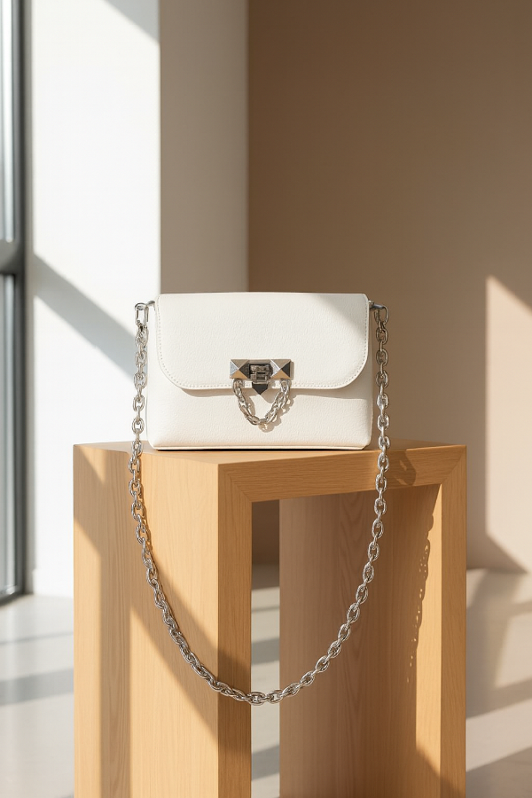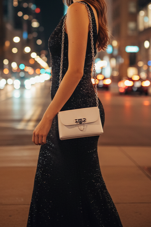 Estilo: Perfecta para la mujer moderna que busca un accesorio trendy . Su diseño limpio en blanco con detalles plateados la convierte en la compañera ideal para looks nocturnos, eventos, cenas elegantes o salidas especiales donde quieres viajar ligera sin sacrificar estilo.