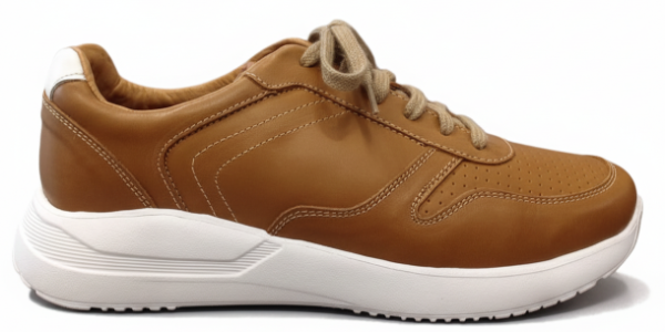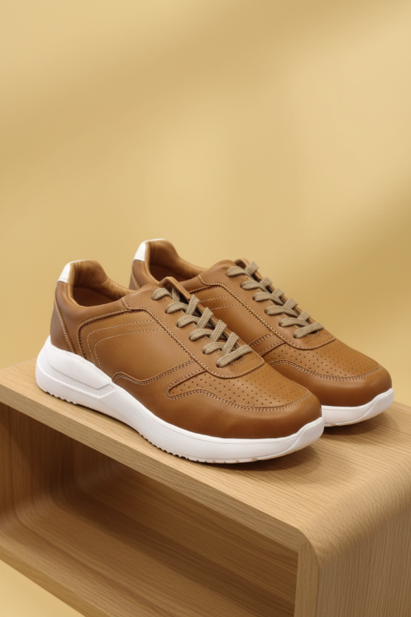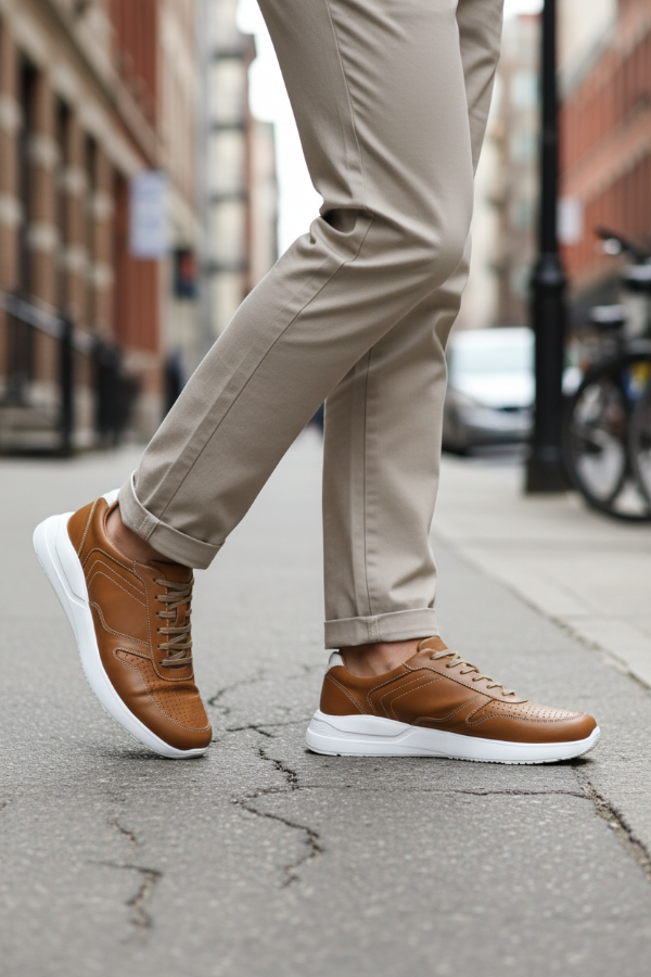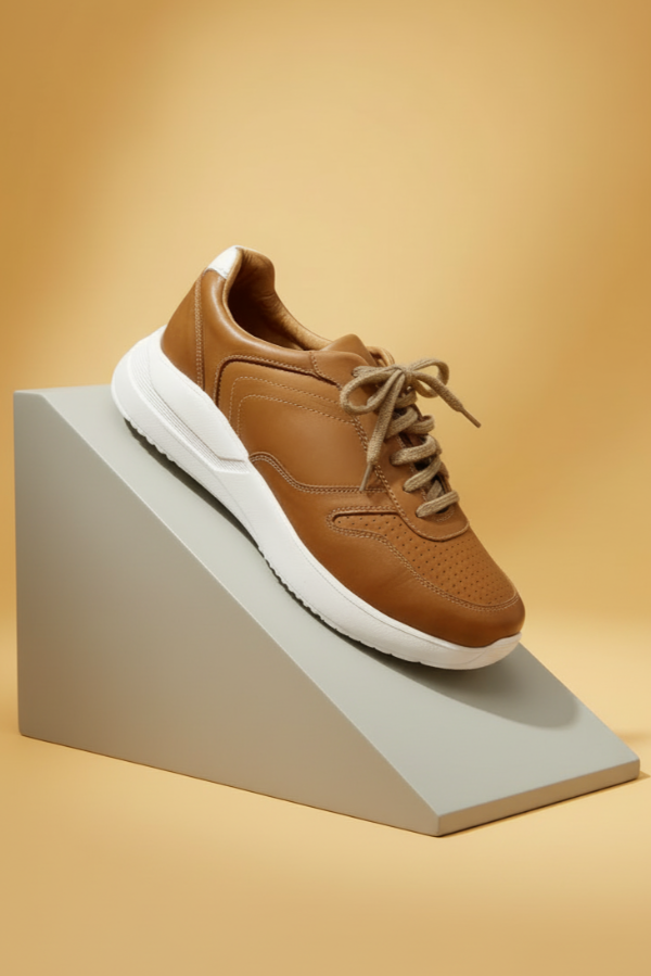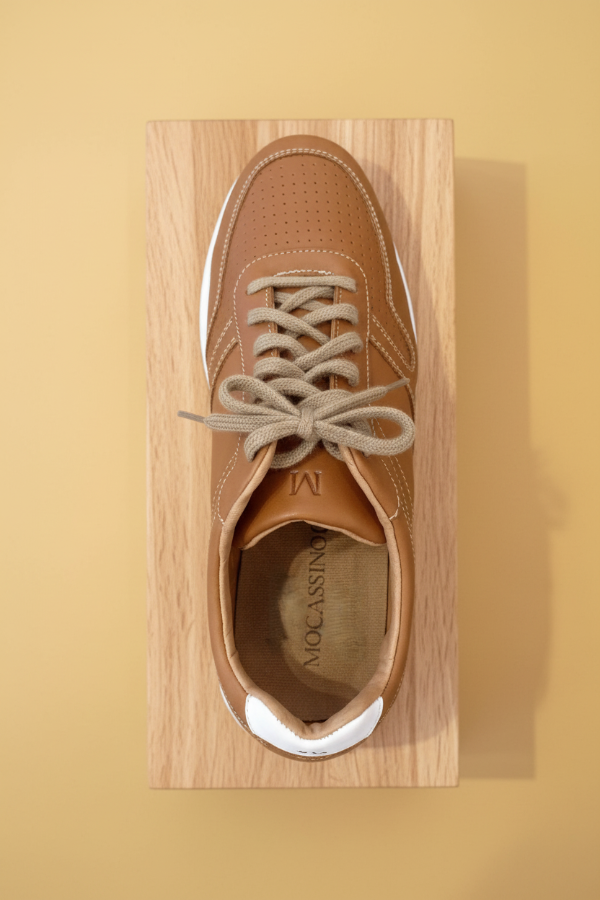 La Moccassino Maddox es una zapatilla urbana de cuero en tono marrón suela/camel, con base blanca alta de goma soft que combina estilo y elegancia. Su diseño moderno la hace ideal para el día a día, adaptándose tanto a looks casuales como elegante-sport. Fusión de confort y estética en un calzado que eleva cualquier outfit informal con sofisticación.