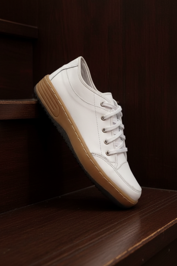 La Mocassino Teo Soft blanca es una zapatilla casual de cuero vacuno soft blanco, con costuras decorativas y cordones blancos, Es un calzado que brinda comodidad por su cuero suave y flexible, a la vez que su perfil elegante-sport es combinable con distintos tipos de outfits.