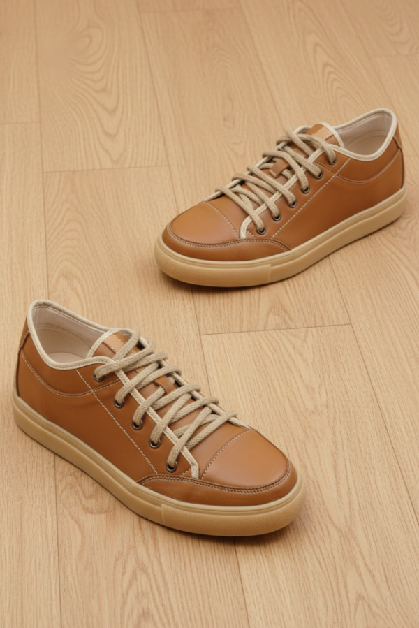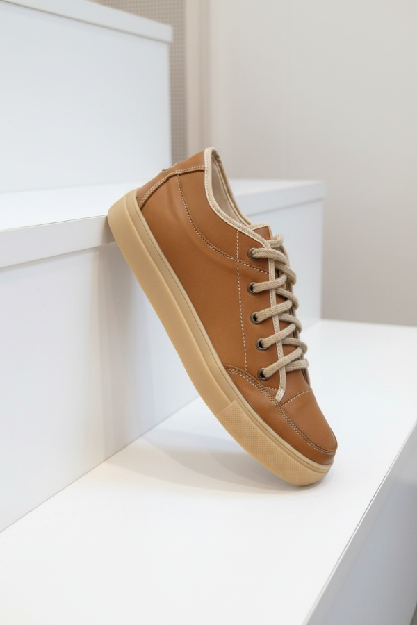 La Mocassino Teo Soft es una zapatilla urbana de cuero vacuno marrón suela, con costuras decorativas de contraste en hilo y cordones beige. Con base de goma beige, es un calzado que brinda comodidad por su cuero suave, y a la vez un perfil elegante-sport que es combinable con distintos tipos de outfits.