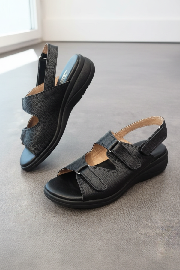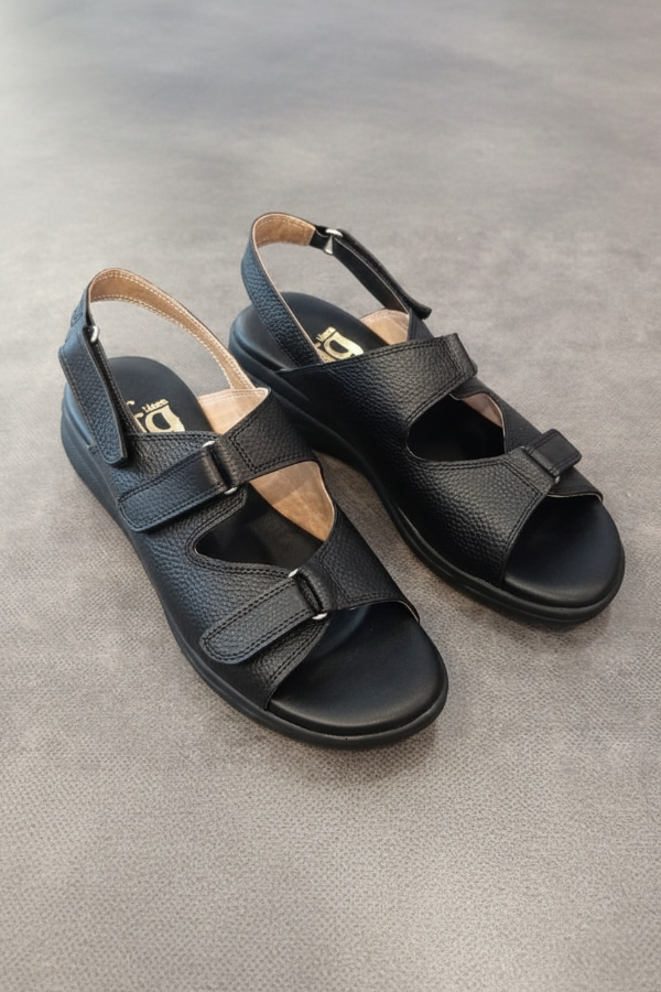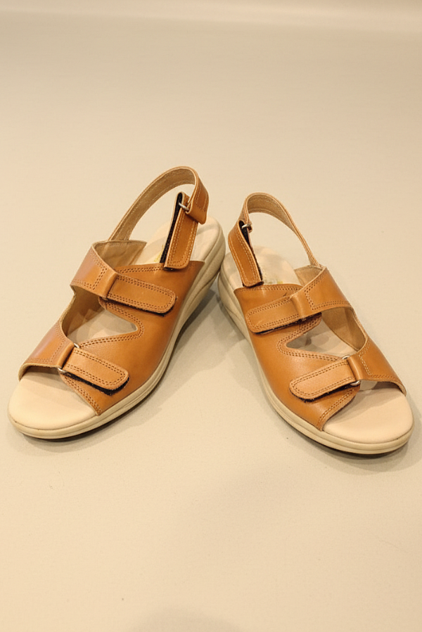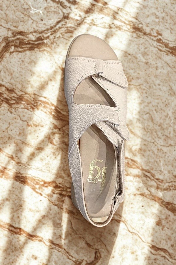 El art 238 de Gina Ferrari es una sandalia fabricada en cuero vacuno de alta calidad que ofrece un sistema de ajuste triple gracias a sus 3 abrojos. El interior suave forrado en cuero acompaña el pie sin generar roces, mientras que la plantilla anatómica brinda soporte y comodidad durante todo el día. Es un modelo diseñado para mujeres que buscan confort sin resignar estética.