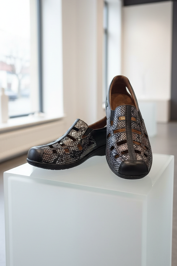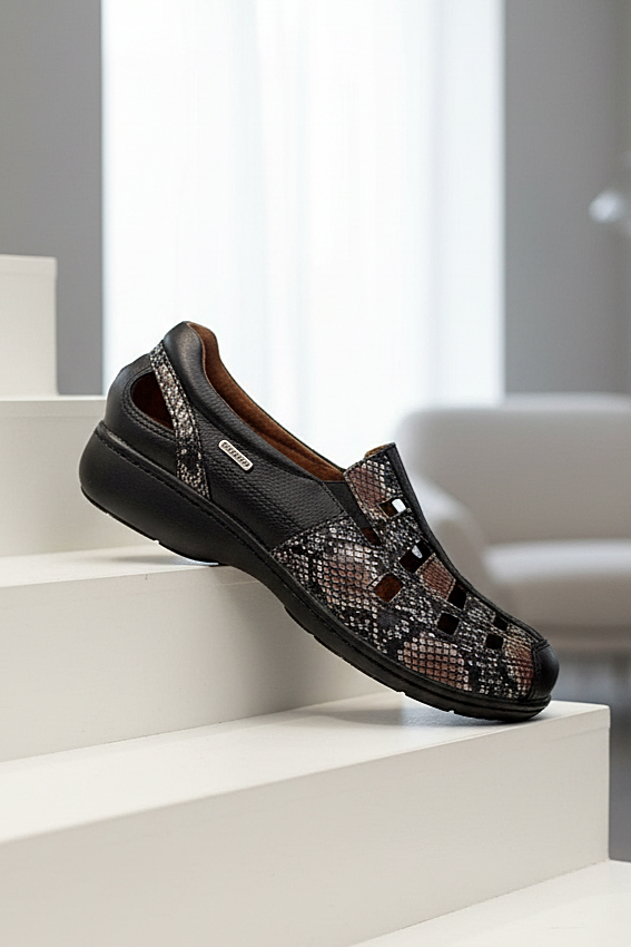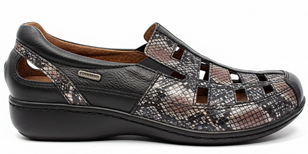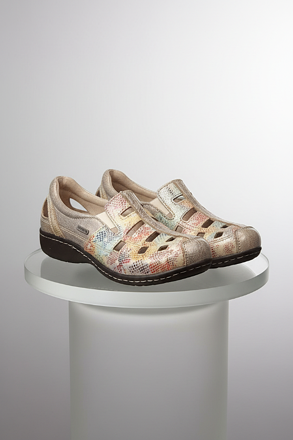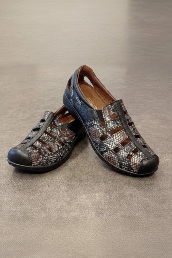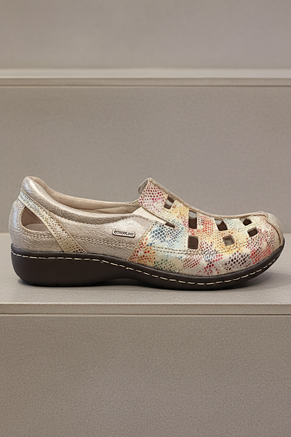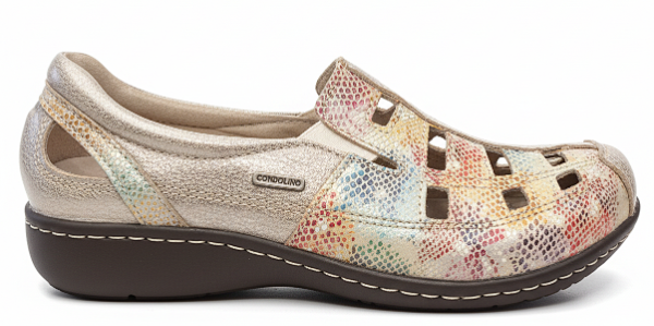 Ell Gondolino Art 2232-6 es un zapato de cuero genuino con diseño calado que aporta frescura y estilo. Ideal para la mujer que busca un calzado versátil, cómodo y distintivo que se adapta tanto a ocasiones casuales como urbanas..Viene con plantilla acolchada y desmontable Elegí entre la audaz versión metalizada multicolor con acabados iridiscentes en tonos pastel o el negro con textura animal print.